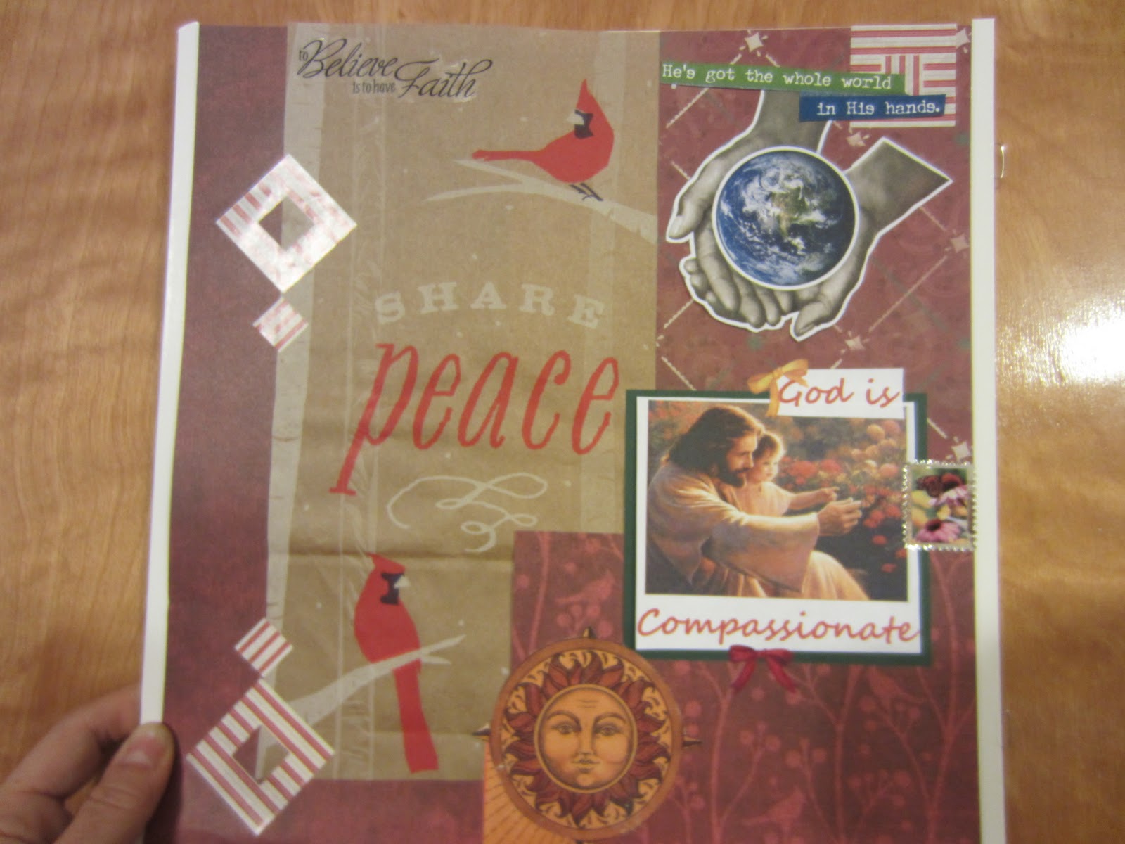 A random scrapbook page (picture-less!) inspired from the bag that Panera sent me home with which is the cardinals sharing peace. It’s actually on my Fridge. I am linking up with Jamie at her sweet Blog space for Make Yourself Monday. Check out her adorably, cute little Cupcake:
