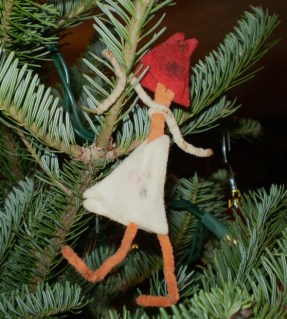 Hidden away at the very back of my Christmas tree, hangs a little elf, his pipe cleaner hand clinging to a tree branch. He is a scruffy fellow made of pipe cleaners and felt and he is not in tip-top condition poor guy. You see, I made him myself 48 years ago in kindergarten! I know…why on earth has this guy not been thrown out? My mother admired my work of art years ago and faithfully displayed him each year. When I married, I brought him with me and he has graced each Christmas tree in our home since. He has become a family joke of sorts, but the tree would not be the same without him. ☺