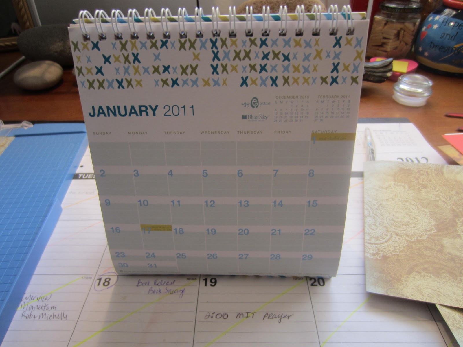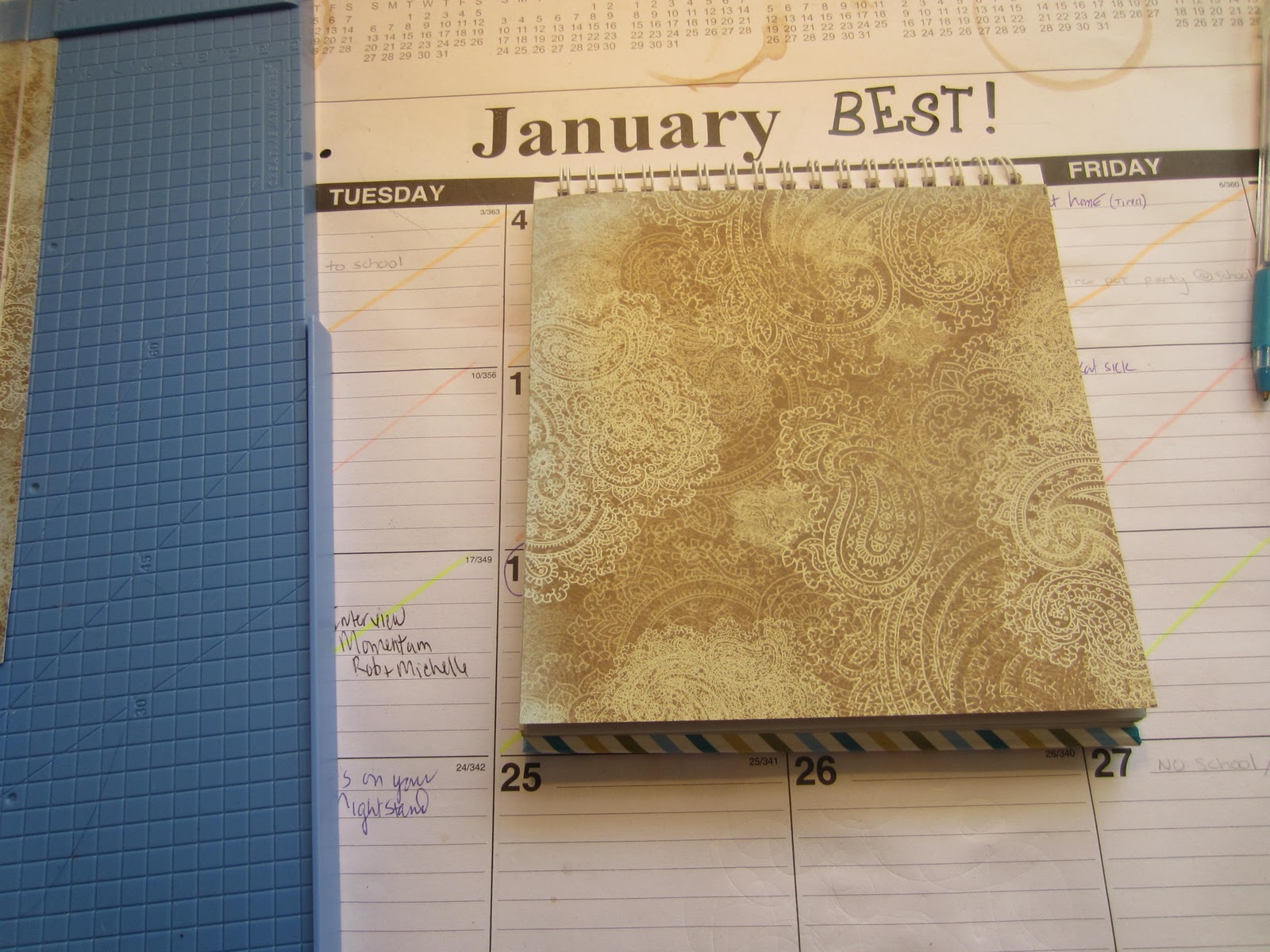 | First I chose and cut a piece of paper to cover the calendar page. |