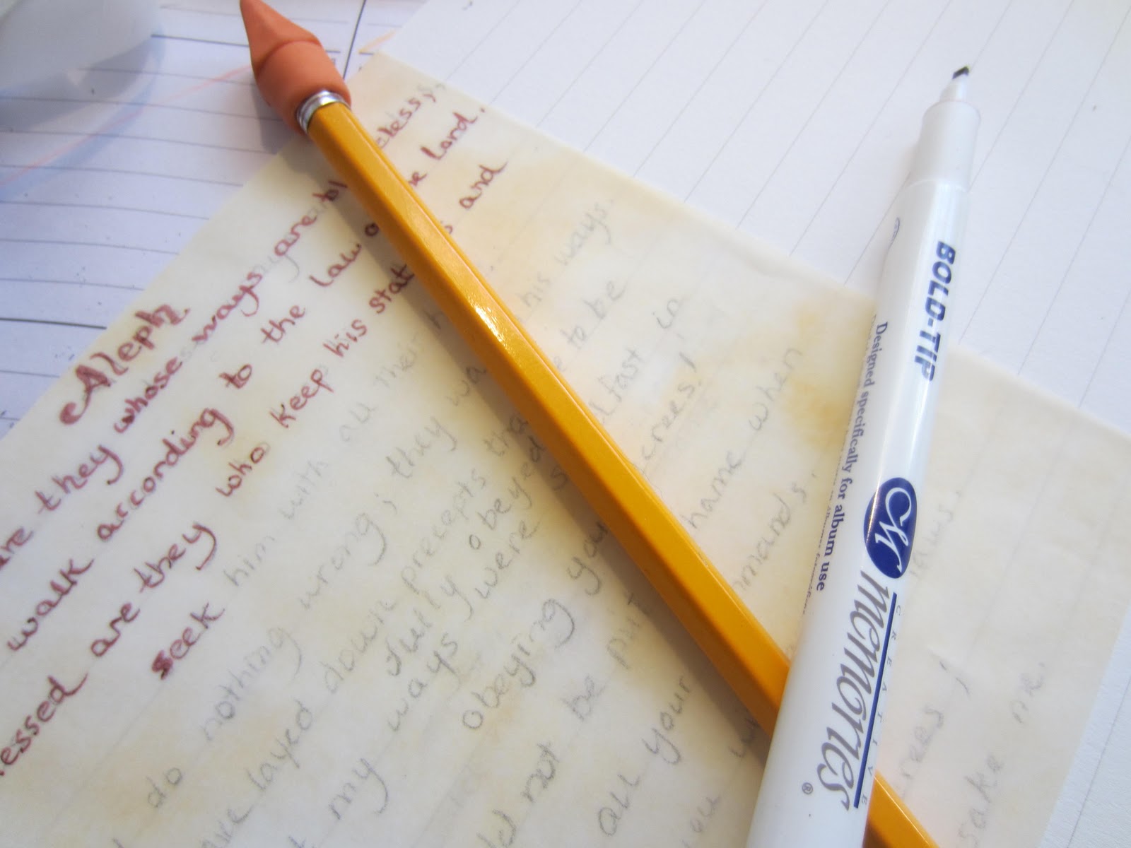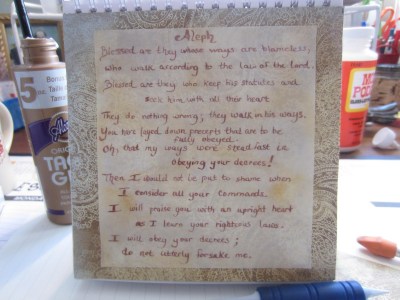 So the plan is to write out each of the 22 stanzas of Psalm 119 each week.