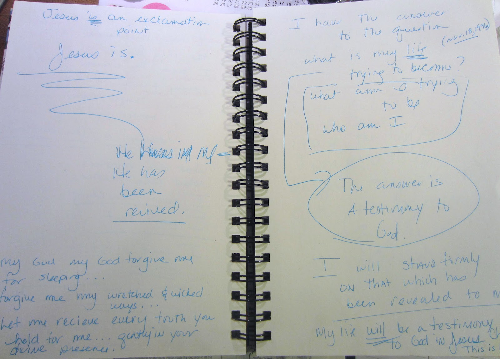 Oh Dawn, this was amazing! I can feel your excitement and new-love enthusiasm. And it hasn't gone away! That's the cool part! You still carry that and you are doing exactly what you prophesied over yourself in this journal entry…”What am I trying to be-Who am I?The answer is a testimony to God.I will stand firmly on that which has been revealed to me.My life will be a testimony to God in Jesus Christ.This is His will.Thy will be done!”
