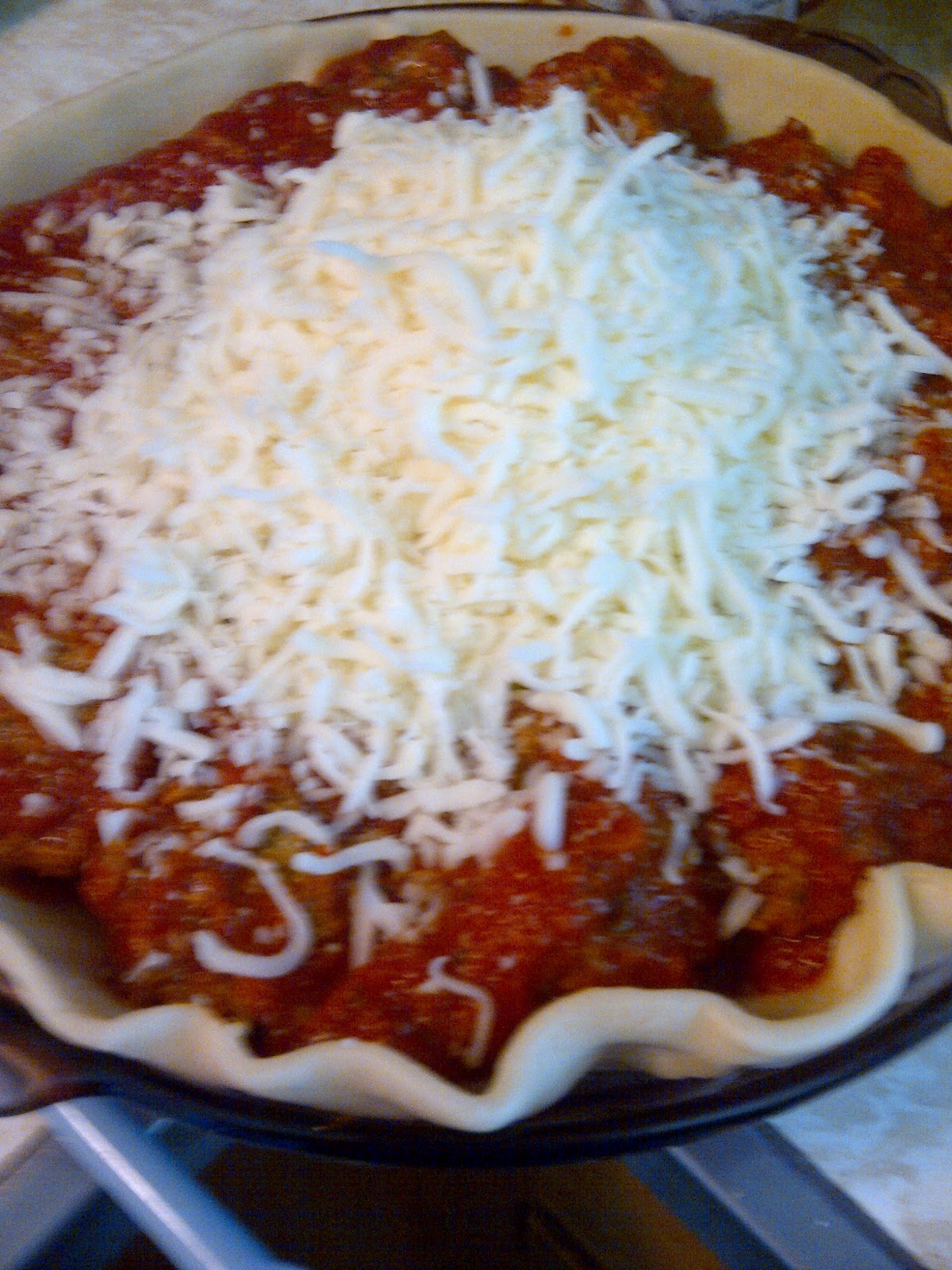 I understand, Pam! OK, so I simmered the jar sauce (while I was writing a blog post…)then I added the meatballs in for @ 30 minutes. Preheated oven to 350 and put meatballs (w/sauce) into ready made pie crusts, added cheese @ 1 or so Cup- I would use 2-3+cups next time)baked in oven for 30-45 minutes (when pie crust got a little brown-I think I timed 30 but added ten at the end) I also added a brushing of olive oil in on the top for the last ten minutes. Impressive, right? lol. That is it…