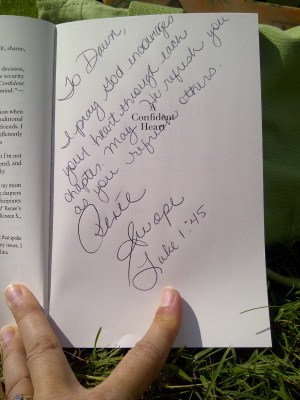 Thank you so much for the book! I was very surprised to see it is signed to me BY Renee Swope! Now how on earth did that happen? I am so surprised, amazed and humbled. When I read the inscription the first time I thought you wrote the note and I was so blessed …but then after when I looked again and saw it was not your signature but Renee’s! Thank you but I am very curious about this! In His Grace, Dawn