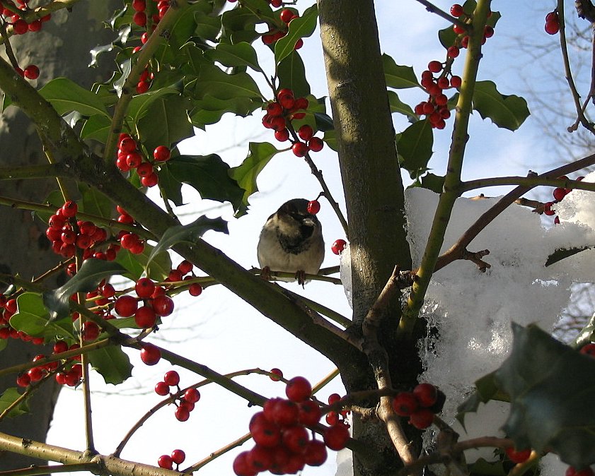 One feather seems stuck, he quickly adjusts, and with a few more hops he makes it to the safety of the Holly Bush.