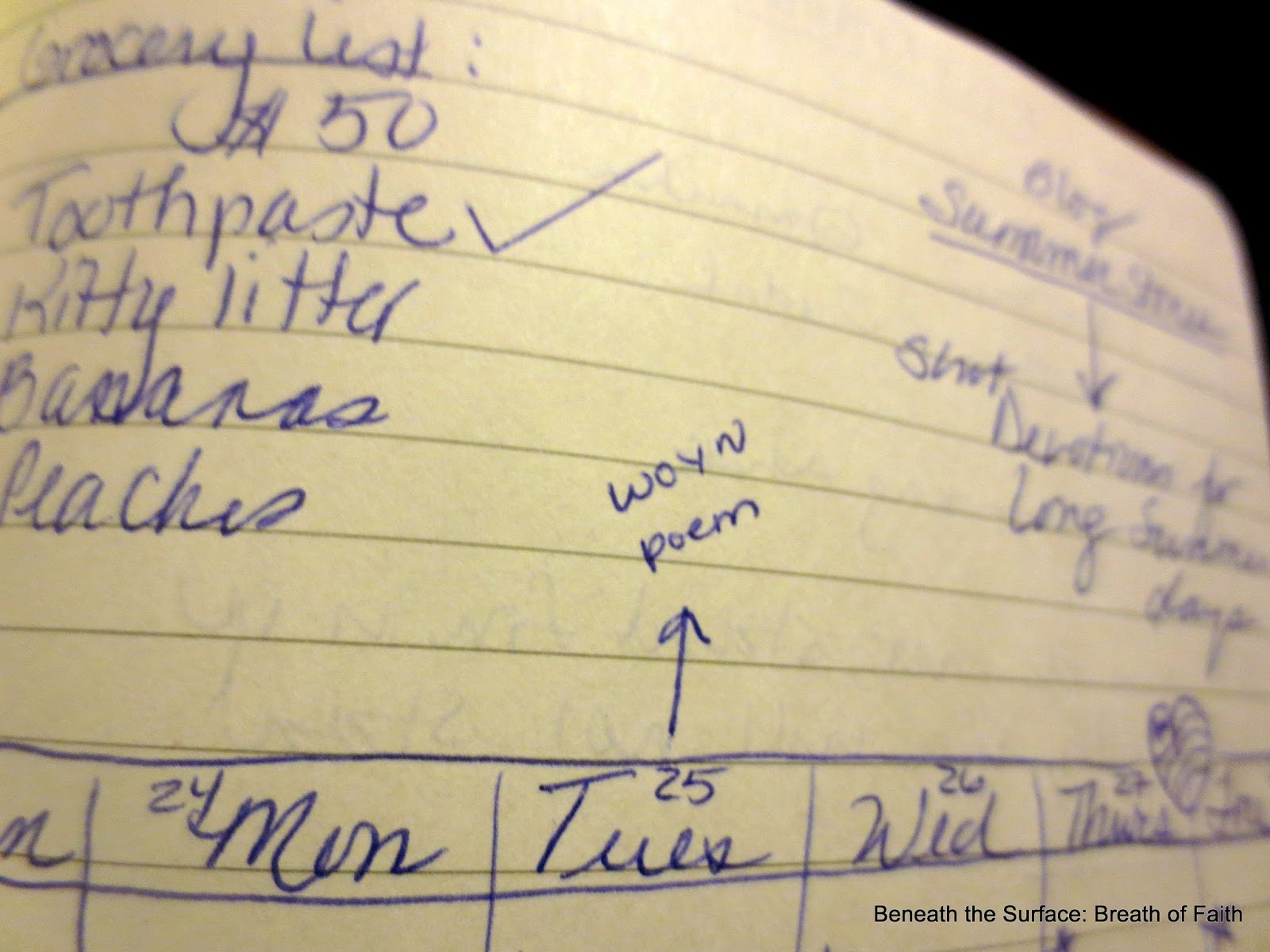Deadlines. To Do’s. They either make you swoon with anticipation or slow your every ounce of creativity to a torturous drip, drip, drip. It’s one thing to write when you are excited about the topic, but what if you have to write for a deadline, for money or commitment. I can’t speak to the writing for cash (I am willing write for cash FYI) but for a scant job or two many years ago. I wrote a poem for a jewelry company about birthstones for a pittance. So, my experience is too little to speak on that fairly. Of course the dreaded endless papers written for college and presentations are another issue. The word deadline can be the kiss of life or death for creativity, right? But here is my two cents…my pittance, if you will. Because I write in my journal so frequently, my richest times of creativity flow are already poured out. Often when I feel dry, I just look back and pull from my more fluid days of writing. Guess what that does…it surprises me and releases me from the clamp of Writer’s Block because obviously, I can see I had a plethora (love that word!) of ideas, and ramblings just awhile back. Perspective is important for the days when you feel the impending deadline coming and stare at the computer screen or blank page as a deer staring into the headlights. You know what’s coming but you just can’t move. Well, get out of the road and read your old stuff. For a real shocker, read some of your college papers. Or old journals, secret hidden writings, blog posts etc. Read your own writing. It will do more for you than reading anyone else’s. Before you conclude I am an eccentric egomaniac, I hope to assure you, I am. No, just kidding. I read myself, because I am real in my journals…and I need to remember who I am, warts and all when I am in the desert with my writing. Or afraid I can’t make or live up to the deadline! I also see how my writing has changed, grown. I like to edit my older writings. I catch things that I missed on previous edits and simultaneously, I am reminded that I am not a totally sucky writer. Hooray. The same is true for you. Will you try it and let me know, the next time you feel ready to choke your computer?