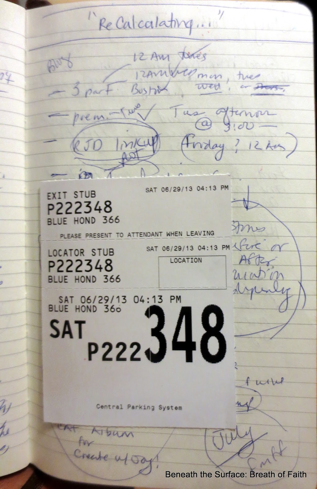 If you all remember my recent “One Night in Boston” posts- here are scribbles from the journal as I randomly planned upcoming posts AND our parking receipt. I stick paper mementos in my journal as well! |
