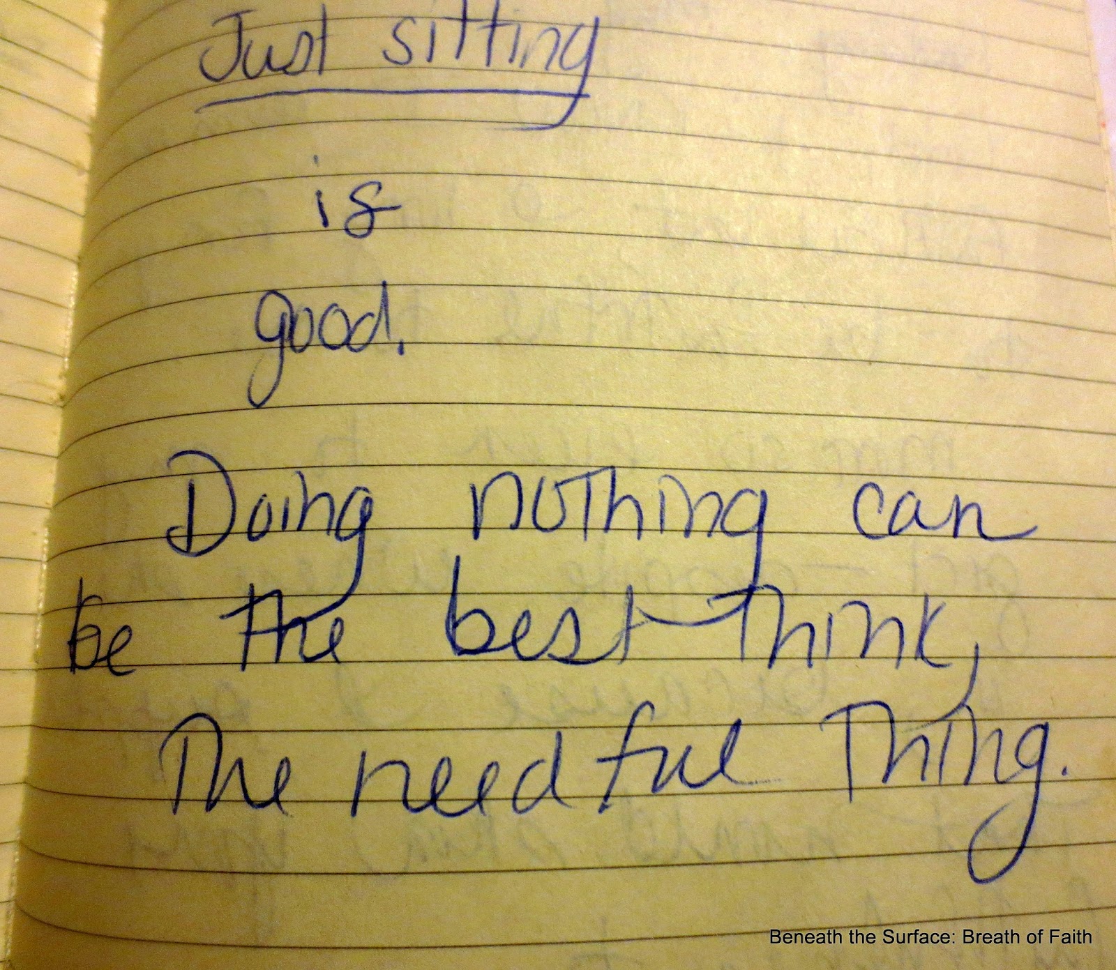 Hi Dawn! Blessings, my girl – and what a kindred thought about sitting and doing nothing! Lots of great thoughts here. My favorite, though – being visual as I am – are the pictures of your random scribbles in all manner of books. I have a plethora of canary yellow pads of all sizes – three different journals by my Quiet Place corner and sticky pads at the ready all over the house. Trouble is – as I get older I often forget WHERE in the world I wrote down that great thought!We'll be going to my son's house the third week of this month. He is recording me reading my new book – YES – finally in publishing mode with a great illustrator – and a CD audio of Miss Kathy, plus a study guide. More on that on my blog soon. Just joined your circle and I finally got my google + circle thingy up. Don't know what I'm doing with it, though. Need someone to visually walk me through so I know just why it is a cool thing. Trying to expand my online presence in anticipation for opening my Etsy – hopefully by summer's end. Yep – lots happening between chilling in my corner with thoughts and a pad – and the Spirit at my side . . .Joy!Kathy