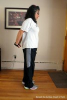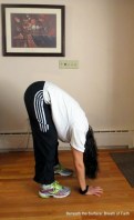 6. Forward Bend- You can modify this stretch by keeping knees bent – mine are actually softly bent here, also I have long arms, so don’t feel you need to touch floor.