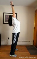 7. Overhead stretch- think of lifting chest to sky-as if a plane flew right over your head.