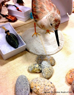Brandon started experimenting with rock carving about two years ago. He was inspired to design something unique for himself to wear that wasn’t overly feminine, and also derived from nature. You might say jewelry design is in the genes, as his mom also designs jewelry and ornaments, using locally found sea glass, as well as various other mediums. Initially borrowing his mom’s tools, Brandon fashioned a unique stone necklace which grabbed the attention of others, and gained him such positive feedback, he decided to create more. Not only did stone carving bring him enjoyment and satisfaction, but Brandon’s hobby offered new opportunities. As his hobby and collection grew, he decided to invest in his own tools and seek to establish himself in business.