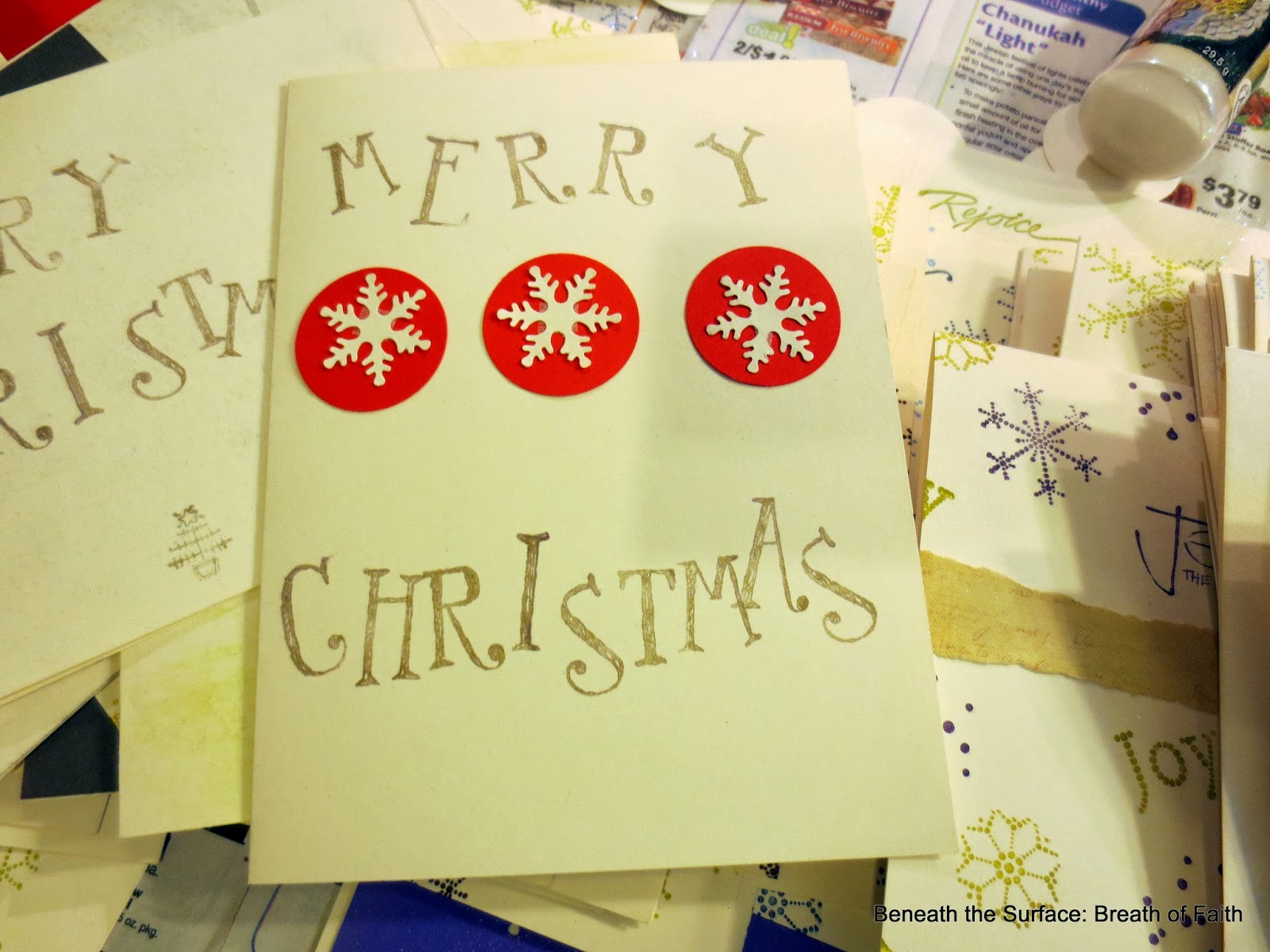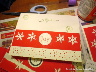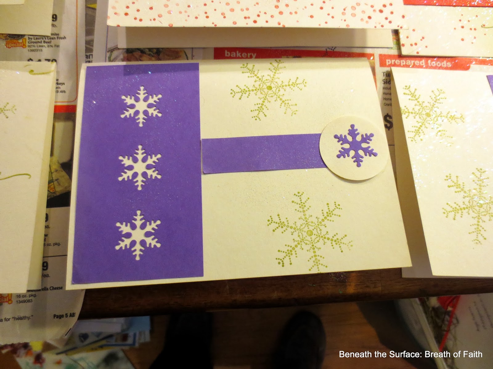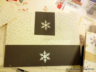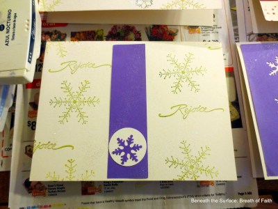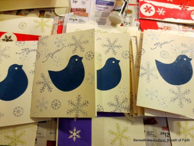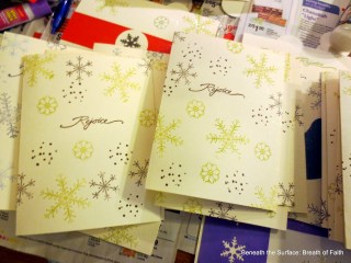 Well, I am to share a brief post on the joy of making Christmas cards, and to share some tips that make it fun and easy to do, even at the last minute! Also, with the snowflake, theme I used they can easily be New Year or Winter “Hello” cards, if one were, say perhaps, late with their Christmas card list. I love to make cards, but I am not really 100% very artsy or crafty. By this I mean, I don’t sweat the small stuff, minor mistakes, and imperfections that come along with handmade cards. They’re not perfect but they are perfectly done! I made one hundred and two cards this year. It’s not the first year that I have made cards, but it is the first year I made so many, made them alone, and enjoyed every minute of creating these little Christmas joy bringers. At least I hope they are- they were for me! So, I want to tell you, I just used what I had on hand, except that I had to buy envelopes, which I bought through Amazon Prime for a very reasonable price.