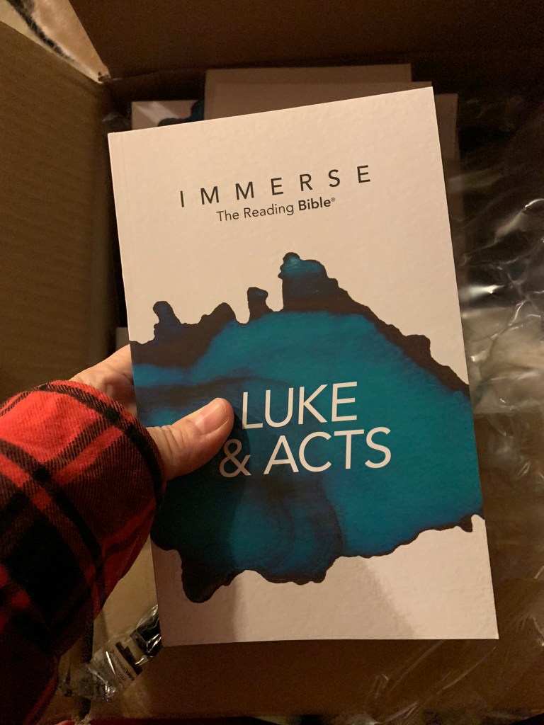 All things did work together for good, and our congregation used the reading plan that comes with each of the Immerse Bible books. This was a great opportunity to sample the reading experience, which is not without challenge for people who may be used to those tiny, numbered verses and section headings. Imagine walking into your house and discovering someone has rearranged your rooms. Now, imagine walking into your home and finding the furniture has been completely removed! It’s a little like that. But now imagine someone knocking at your door and saying, “We’ve completely renewed and revived all your furnishings, they are like new, and we can walk you through placing them back how they were or maybe in new places -together.” That’s how the Immerse experience is to me. You are walking in a familiar place, but it’s different, it takes a bit of adjusting, but it’s good. Really good. And maybe it’s good to be a little unsettled in your Bible Reading habits occasionally. And for those who may be put off or intimidated by Bible reading plans in general I believe this is an approachable inroad to begin. Especially the shorter booklet which focuses on the early church.