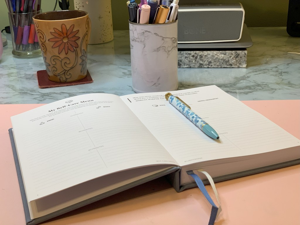 Let’s start with the aesthetics of this planner. I was sent a beautiful blue, Vintage Denim, hardcover book that feels sturdy. It is made with high-quality faux leather. The paper is Premium 100gsm Woodfree Paper (FSC Certified). FSC stands for Forest Stewardship Council and “FSC® certified paper comes from Europe’s most ecological and well-managed woodlands, and it’s totally renewable and biodegradable.” (From the FSC website). The paper is DREAMY. OK, it’s white and thick, but not too thick, and I tested ink-to-paper performance with a Sharpie S-Gel 0.7 and a Lamy Fountain Pen (medium nib) with great results. Both of these would work well on the pages of this planner. The signatures are sewn and the book lies flat. Two Ribbons are included to mark your chosen sections while using. From what I can see one ribbon matches the planner color, and the other is a more neutral color. There are three size options available and I’ve included a video below from the website which explains the differences clearly for my visual-loving YouTube friends. The main difference I see is that the A5 standard model as well as the A4 include two pages of pre-planning, while the Mini does not. I will get into that in a bit as I break down the features. A unique feature I noticed upon initial observation is that the Planner itself is numbered with the Self-Care Menu beginning on Page 2. The first page is dedicated to a word of encouragement from Alex Phillips, Curation Co-founder. The number of pages in the book I received is 283 from start to finish including 5 lined pages at the end. This may seem a minor point, but might I suggest those backlined pages would make a great index for any information you want to access at a future point. This is a small feature I think is not so small at all! Brilliantly done, in my opinion.
