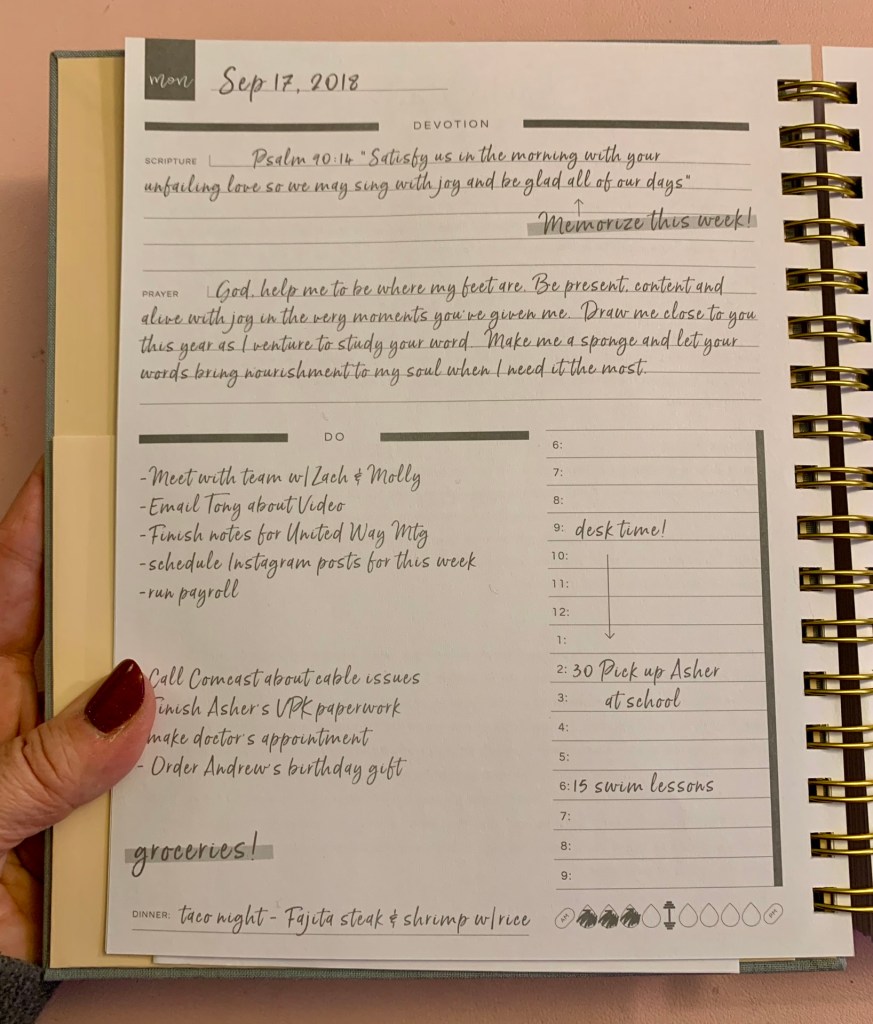 On each Daily page, there is a health tracker, for water intake. I am terrible with water trackers or trackers in general- and terrible about water intake as well. I do love that this one is at the bottom of the page. I do love the way this planner prioritizes your perspective on your faith. The creator of this planner hopes this helps encourage intimacy with Jesus. Daily Bible Study is the meat and potatoes of this planner. Your To-Do list is second to your To Whom focus. I can certainly wrap around that goal! and focus.