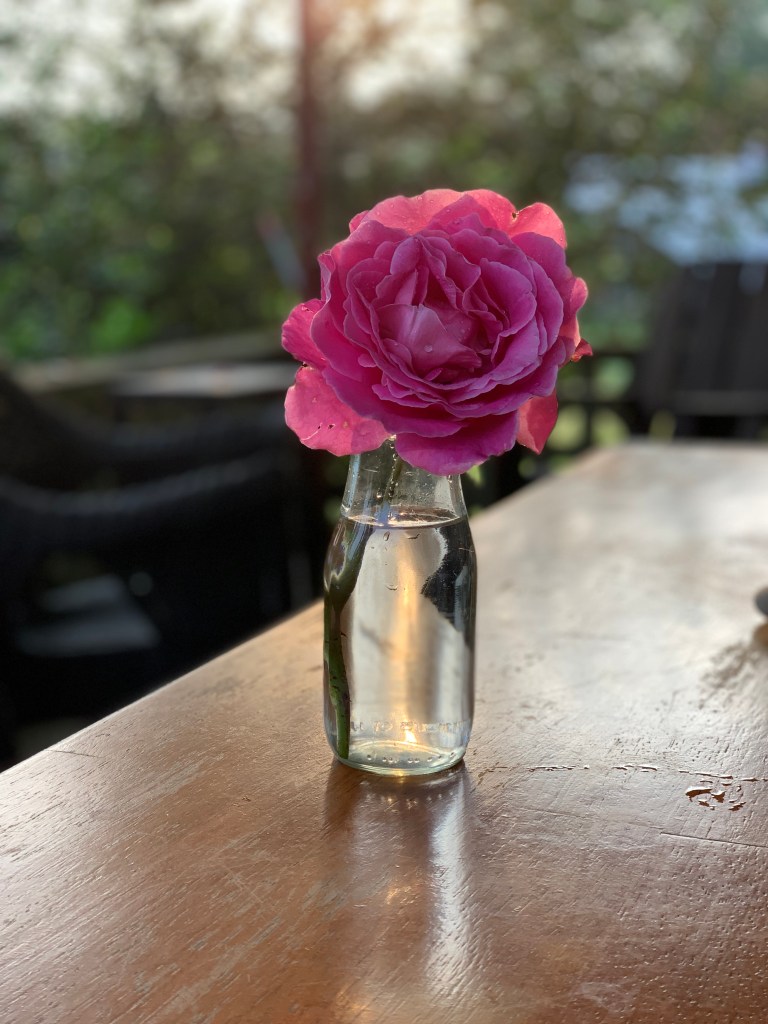 This post has more pics than usual, due to the startling, pink exquisite rose that was my muse on the morning that inspired this post.