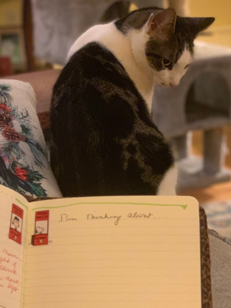 Naturally, a girl who can’t talk turns to the pages of her journal to unload, figure out all the things she did not get done last week, that will still need to be done next week, along with other random thoughts. Of course, the cats don’t mind me lying around the house at their speed. Our Christmas decorating seems to have happened in drips and dribbles this year…I feel like 2025 has catapulted us into December, and I am still brushing my seat off, trying to figure out what happened.
