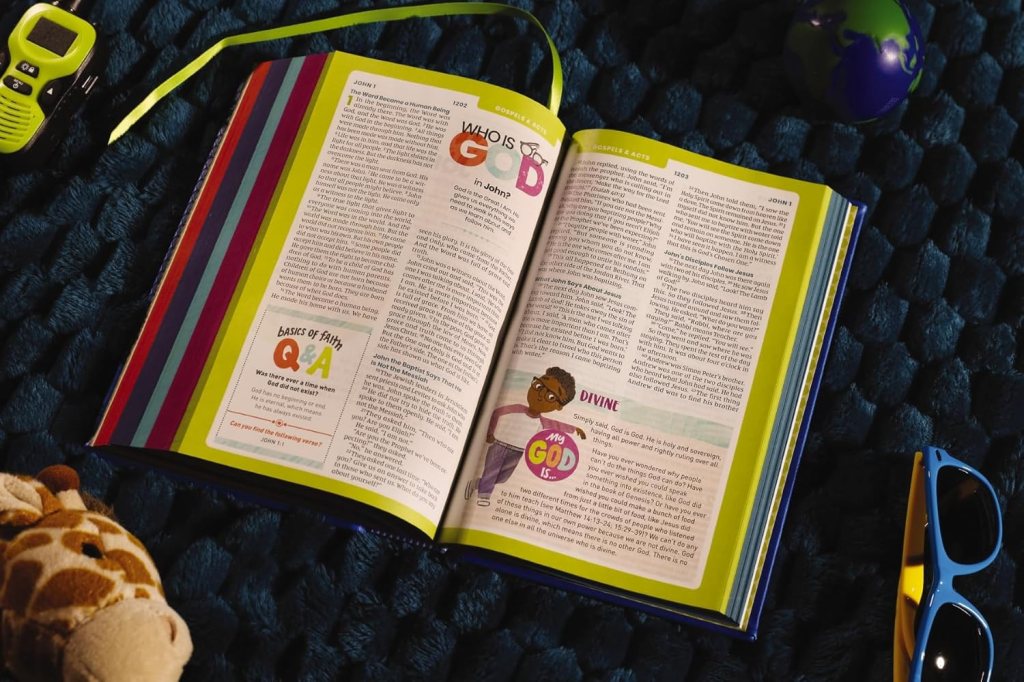 This Bible is right for kids ages 6–10, and is a full-text Bible easy-to-read NIrV translation in 9 point font. The built-in teaching tools facilitate biblical literacy without overwhelming young readers. Here are some details (from the website) on key features.